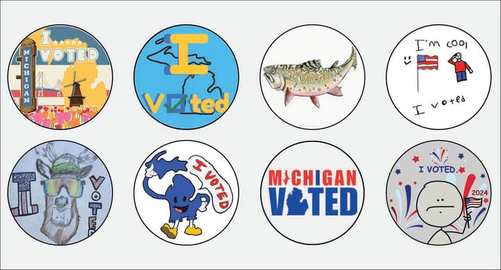 🇺🇸 I Voted Stickers: Michigan is hosting a state-wide competition to select the official 2024 “I Voted” sticker. Of the 480 submitted designs, 25 finalists have been selected in the Elementary/Middle School, High School, and Adult categories. You can use this link to select your top 3 from each category.