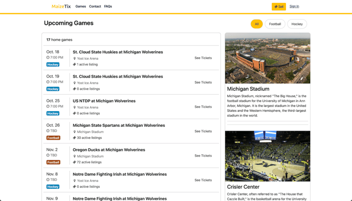 🎟️ MaizeTix: A group of four U of M students has launched MaizeTix, a marketplace for student tickets. Created to combat ticket scamming, only verified U of M students can use the platform. MaizeTix currently only supports the buying and selling of football and men’s ice hockey tickets but plans to introduce men’s basketball soon.