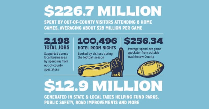 💰️ The Economic Impact of Home Games: Last week, Destination Ann Arbor released a report on the economic impact of U of M home football games on the Ann Arbor economy. Things I found interesting: