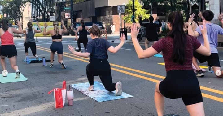 Sunday: Barre3 is hosting a free pop-up class on Main Street at 10 AM (pictured above).